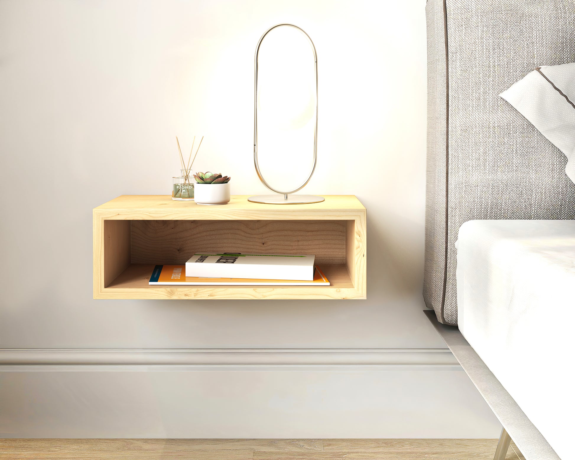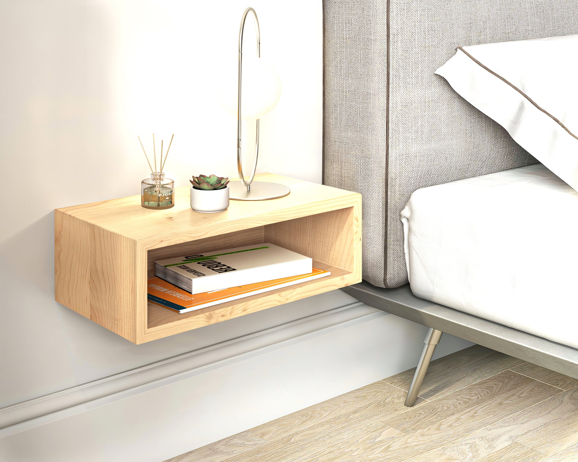 Solid Maple Wood Floating Nightstand / Floating Maple Bedside Table / Mid-century / Scandinavian / Eames