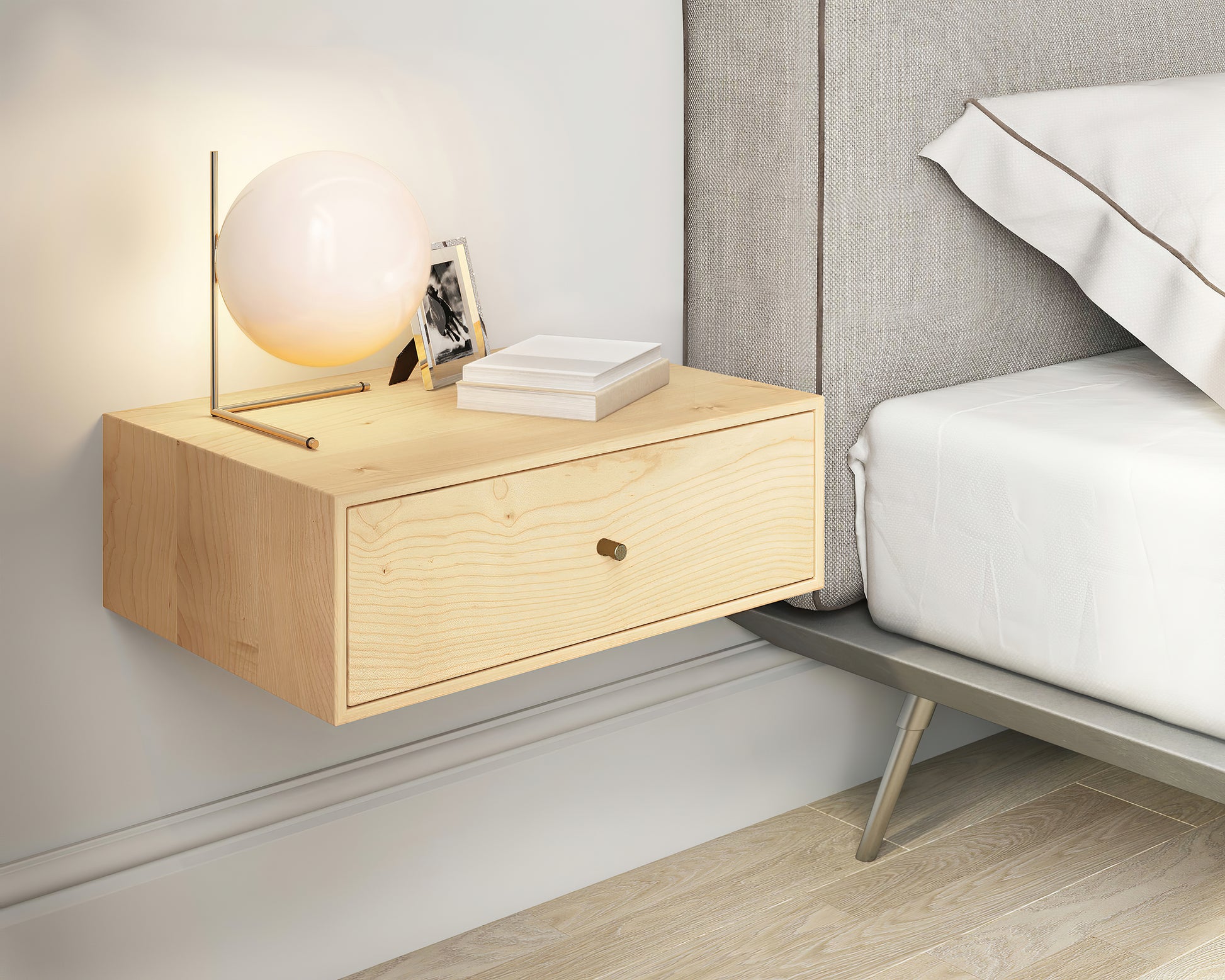 This gorgeous floating nightstand / hanging bedside table / console is crafted by hand in solid Maple.
