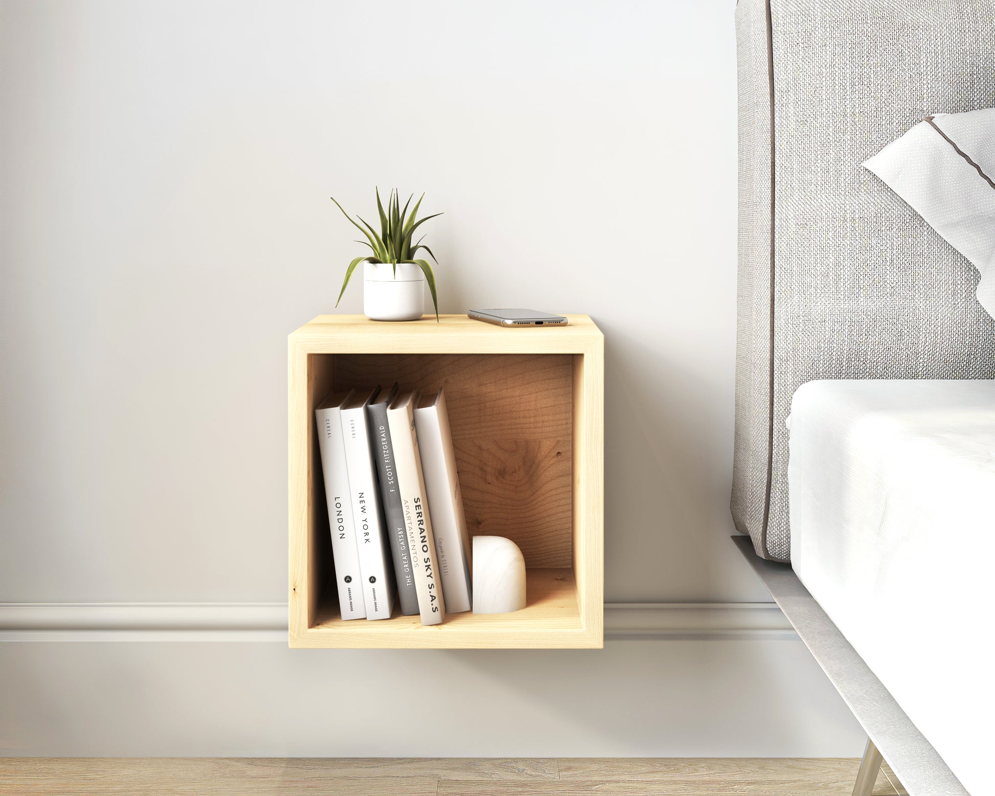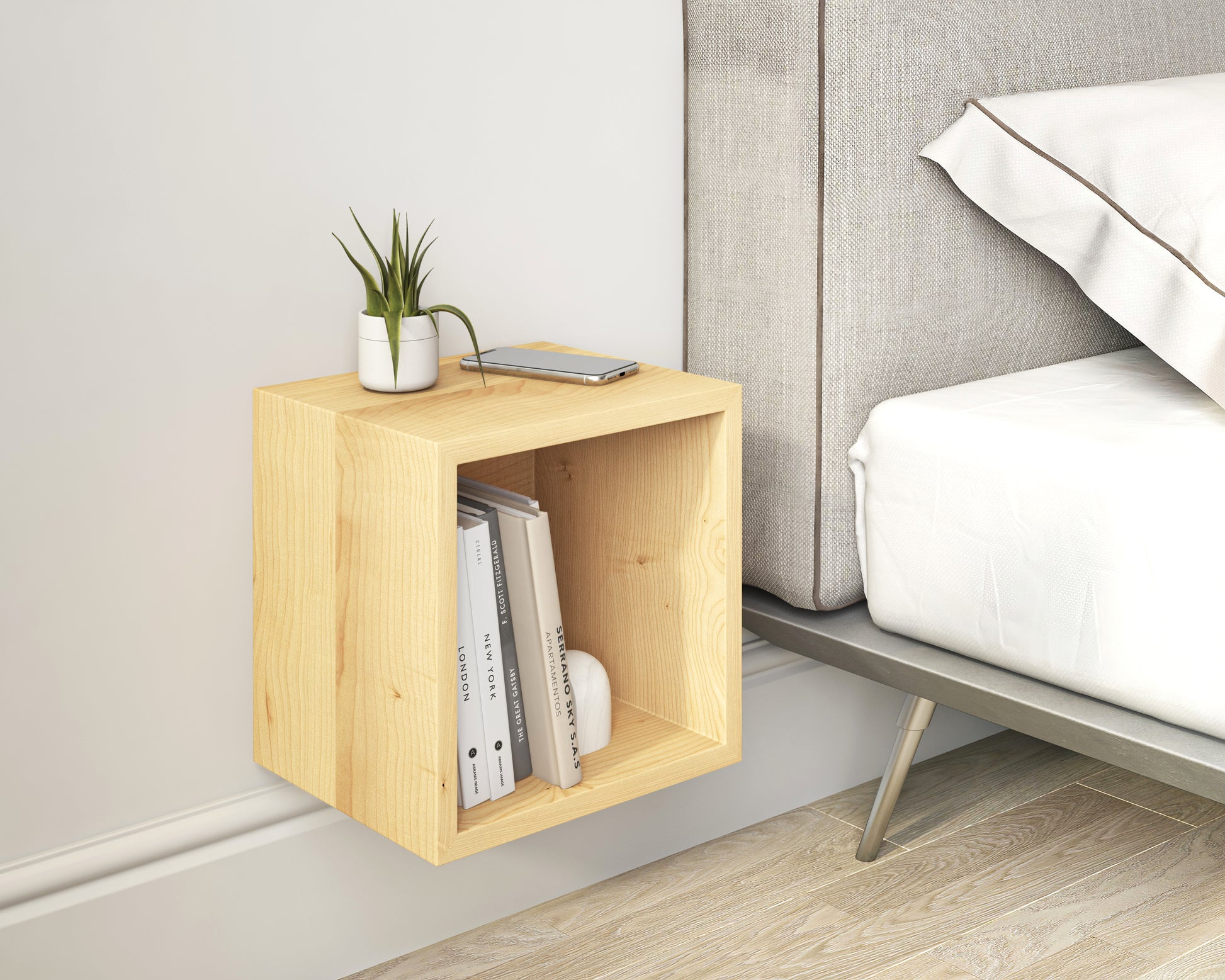 Solid Maple Wood Floating Nightstand / Floating Maple Bedside Table / Mid-century / Book Shelf