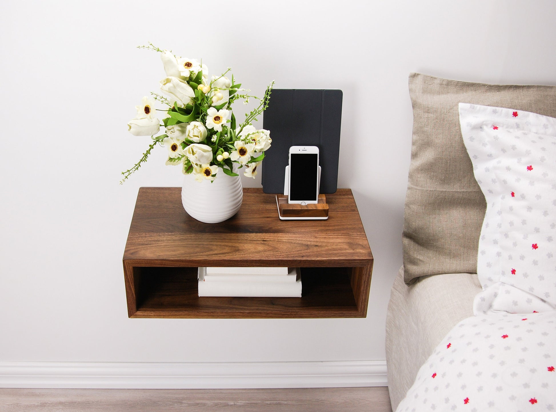 Solid Walnut Wood Floating Nightstand / Floating Walnut Bedside Table / Mid-century / Scandinavian / Eames
