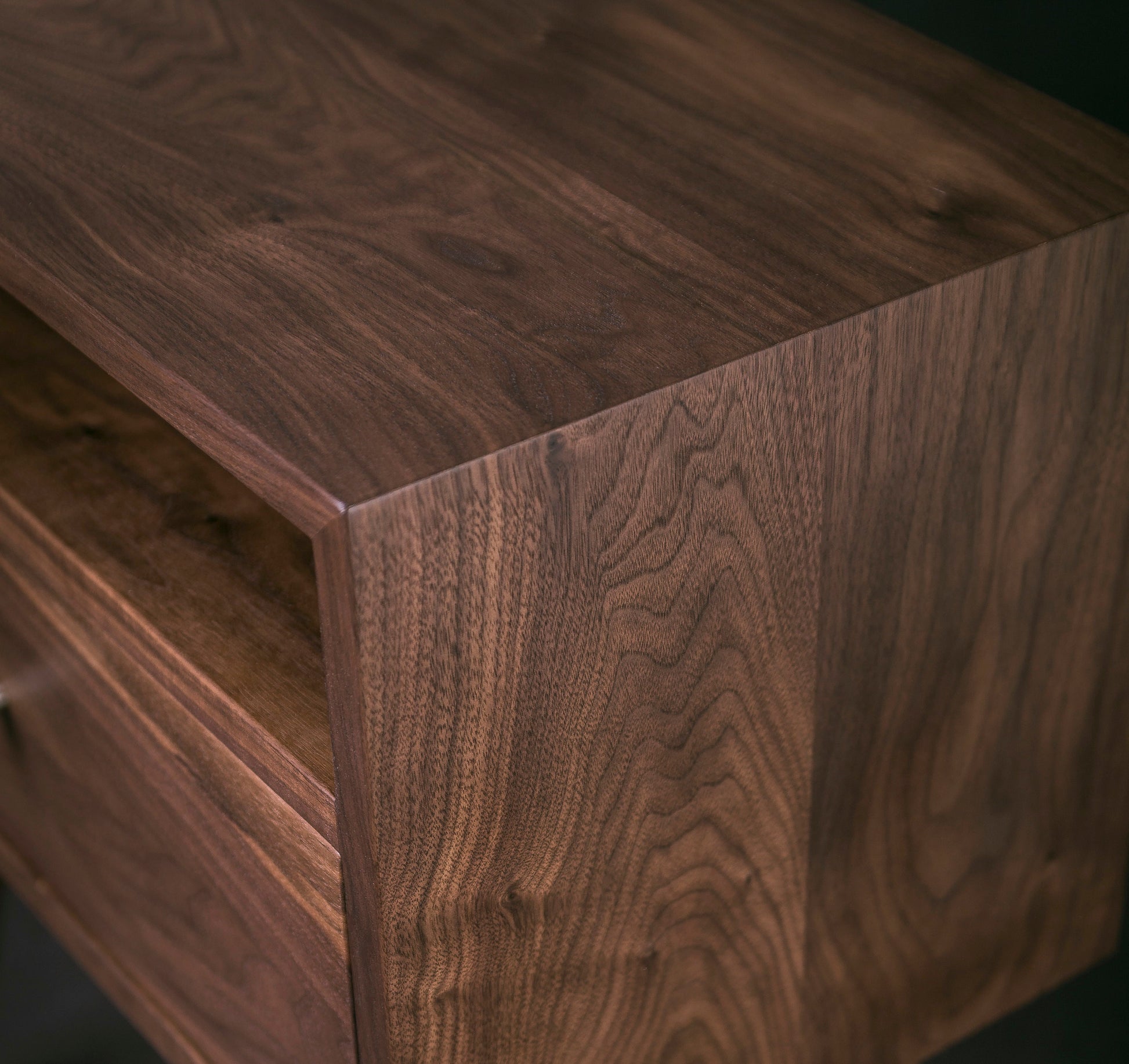 -solid black walnut for the outer case and drawer front
