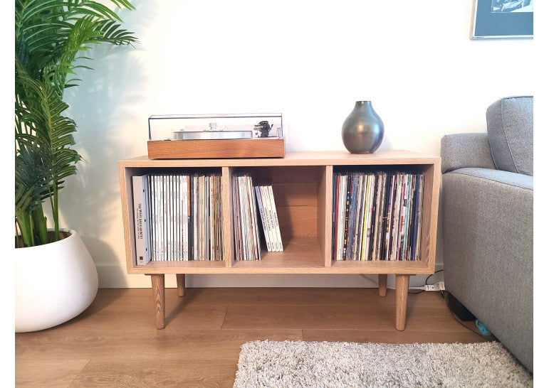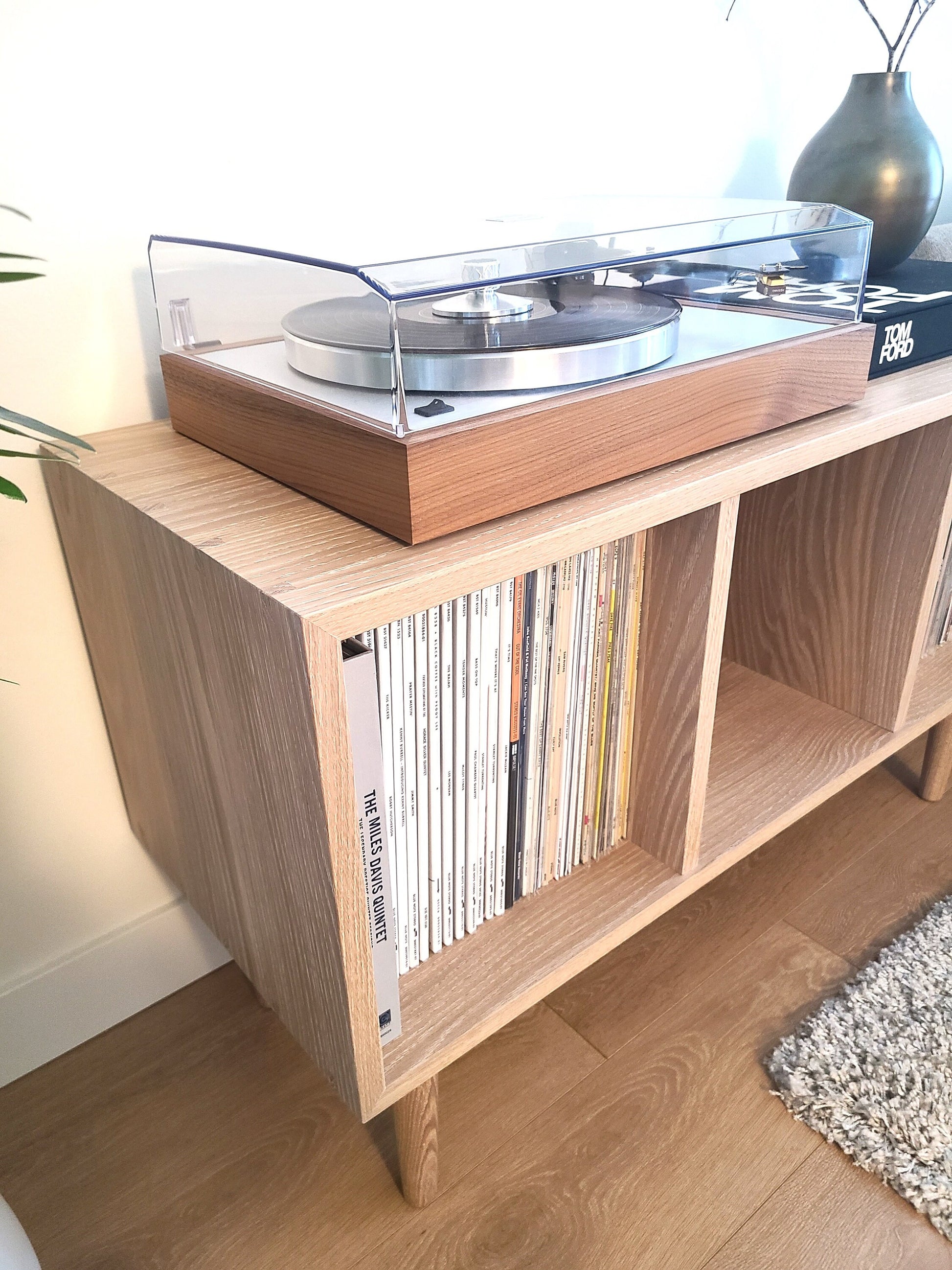 Solid White Oak Vinyl Record Console, Turntable Stand, Storage Record Player Table, Media Center, Mid-Century Modern